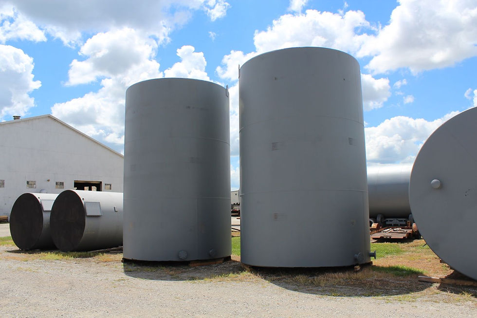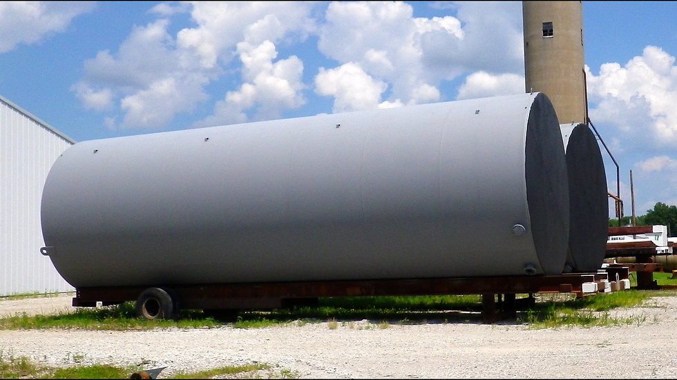 Vertical and Horizontal Cylindrical Atmospheric Welded Steel Storage. Single & Double Wall. In sizes up to 14’ diameter by 50’ OAL and up to 50,000 gallons. Standard configuration: Fabricated of HR mild CS (ASTM-A36) plate or Stainless Steel: 5/16” THK flat flanged bottom, 1/4” THK Cylinder, & 3/16” THK flanged top (slightly coned). Unit furnished with bare steel interior, exterior shop-coat primer (spray applied), and complete as noted: